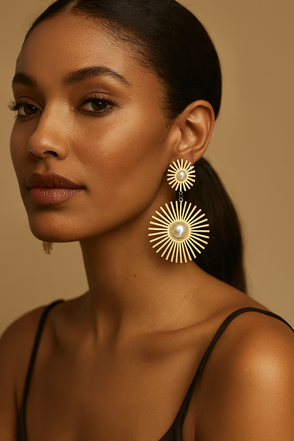 Pair them with sleek evening wear — a black slip dress, low bun, and dewy makeup to highlight their golden glow.