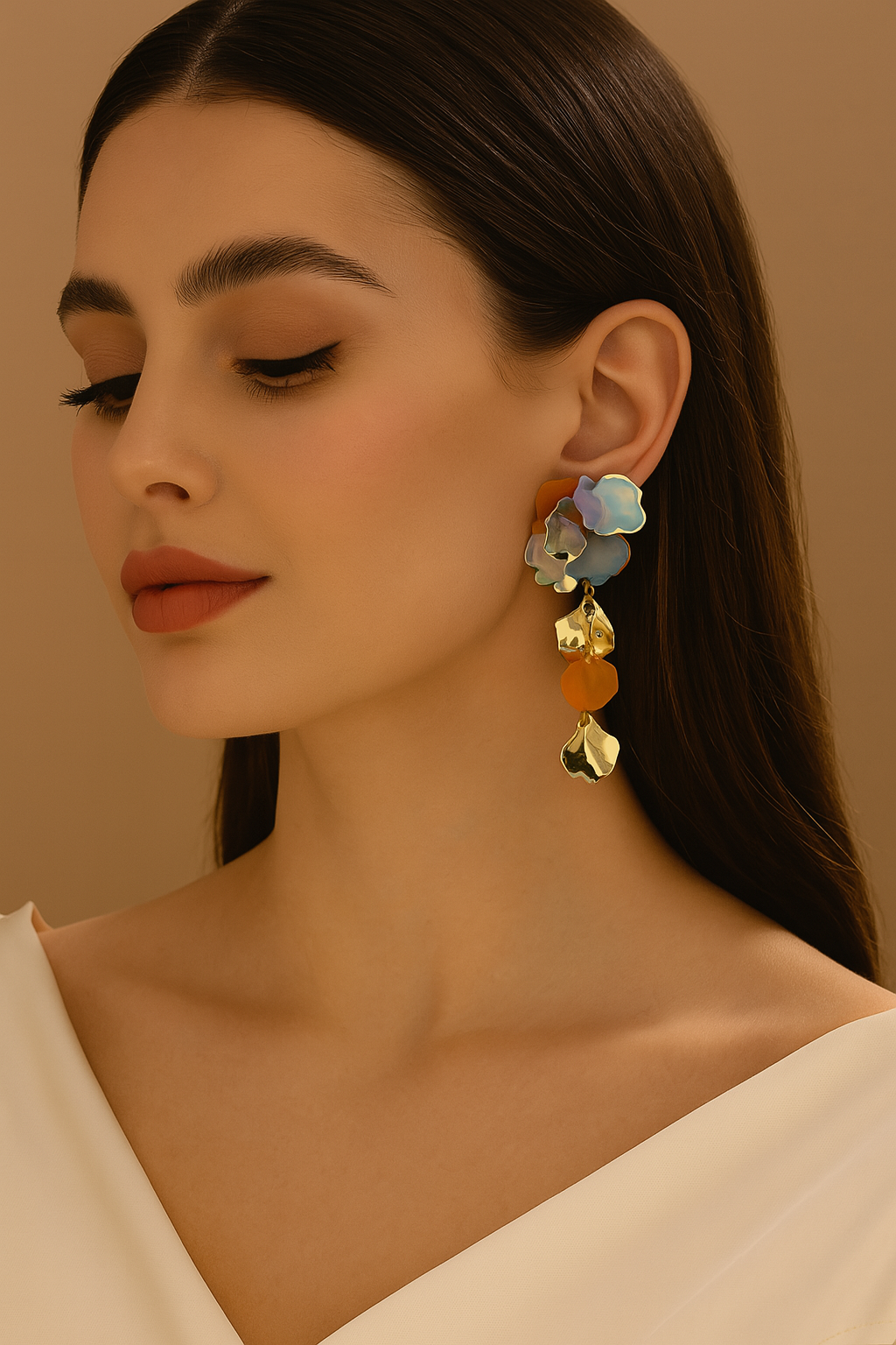 - Evening Glow: Match with a sleek ponytail and golden eyeshadow to enhance the earrings’ luminous finish.